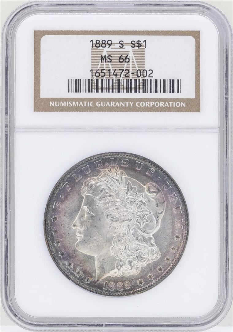 One 1889-S $1 Morgan Silver Dollar Coin NGC MS66. NGC Certified.