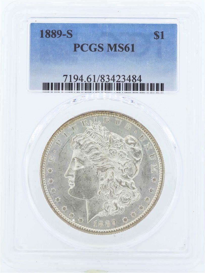One 1889-S $1 Morgan Silver Dollar Coin PCGS MS61. PCGS Certified.