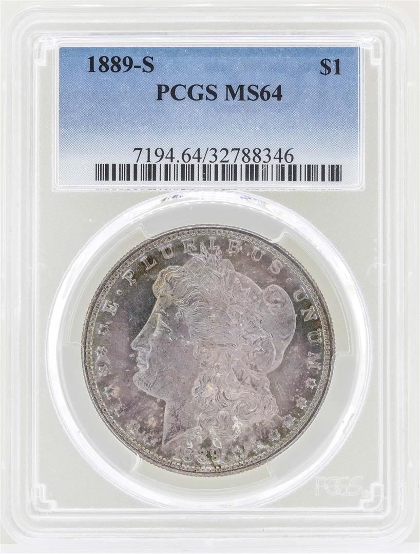 One 1889-S $1 Morgan Silver Dollar Coin PCGS MS64. PCGS Graded.
