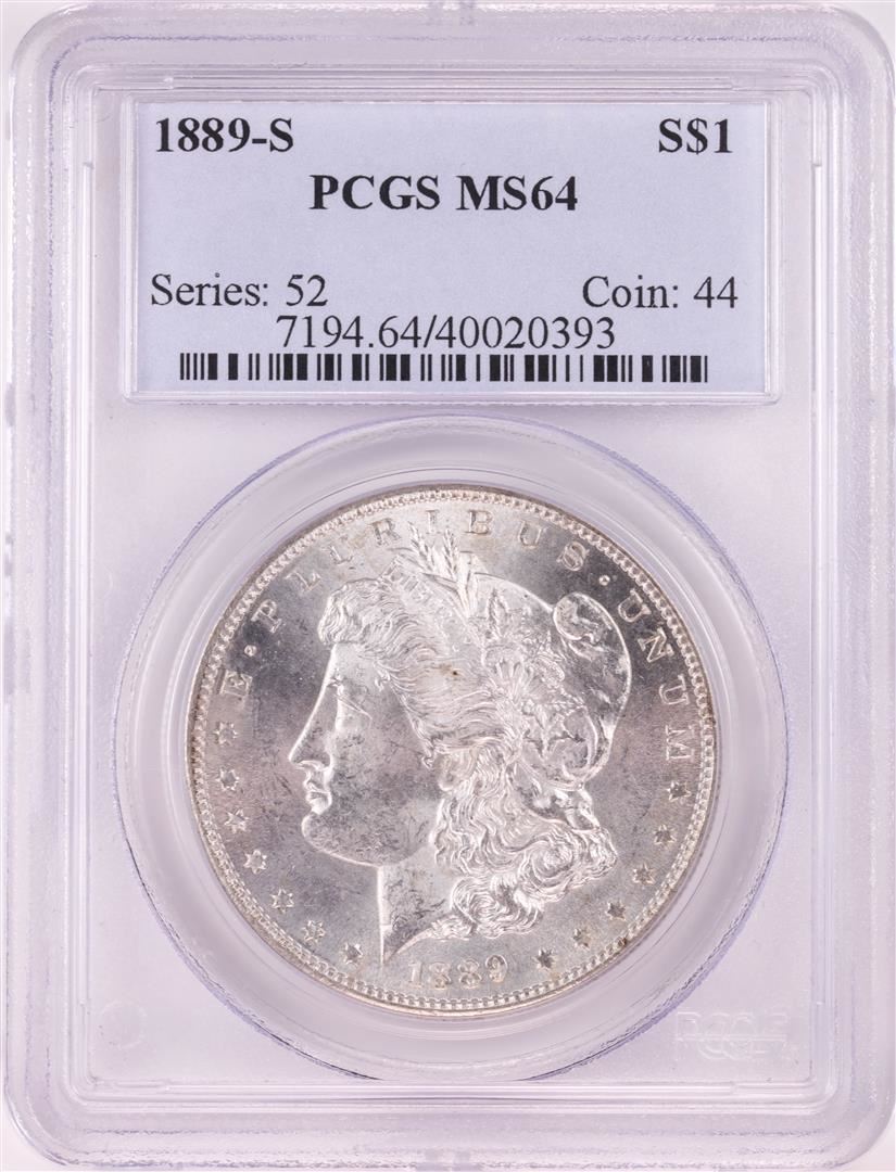 One 1889-S $1 Morgan Silver Dollar Coin PCGS MS64. PCGS Graded.
