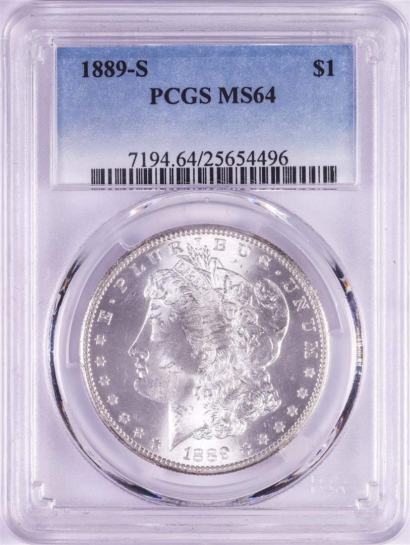 One 1889-S $1 Morgan Silver Dollar Coin PCGS MS64. PCGS Graded.