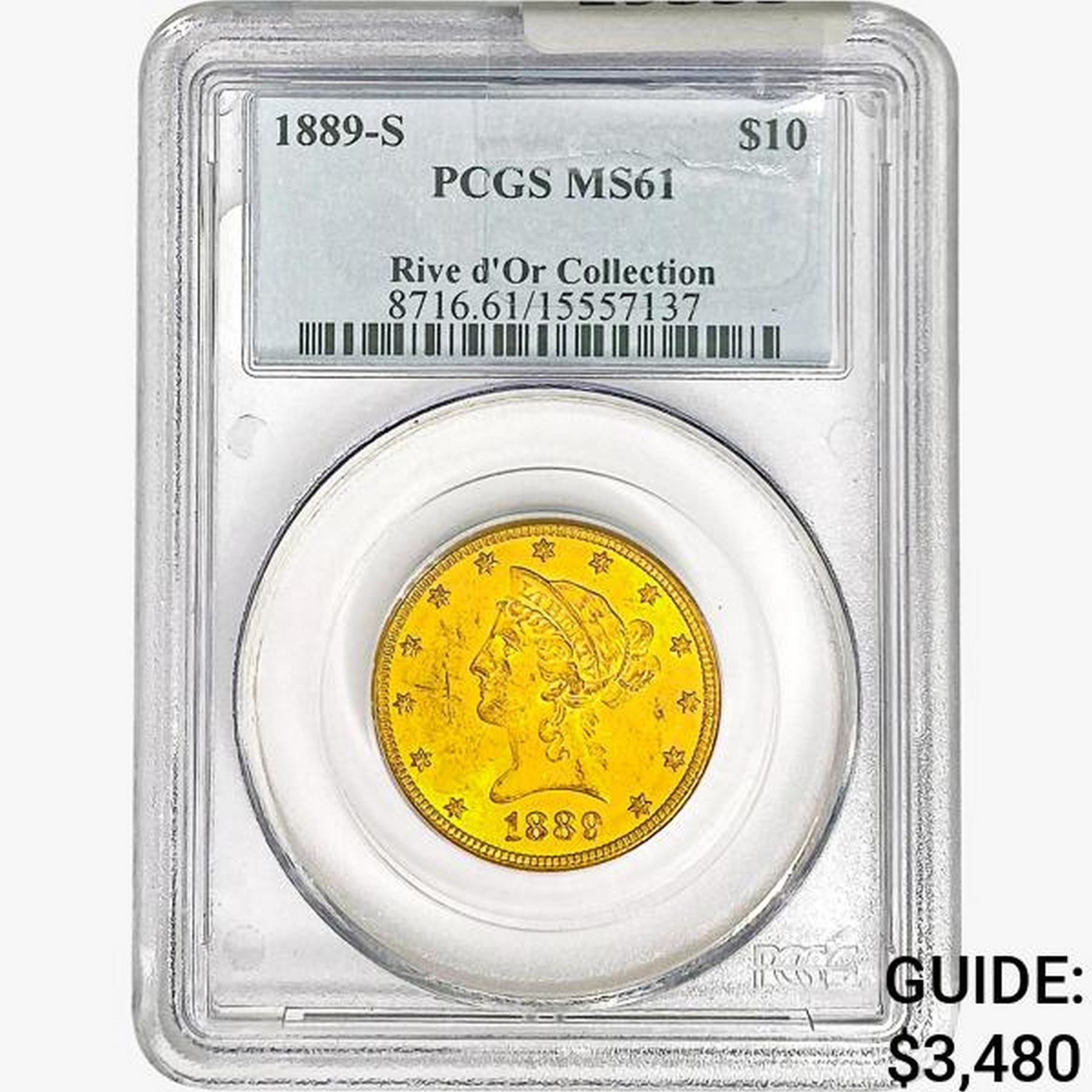 1889-S $10 Gold Eagle PCGS MS61 Rive d'Or COLL.