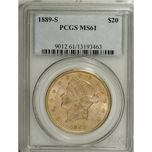1889-S $20 MS61 PCGS. PCGS Population (241/804). NGC C