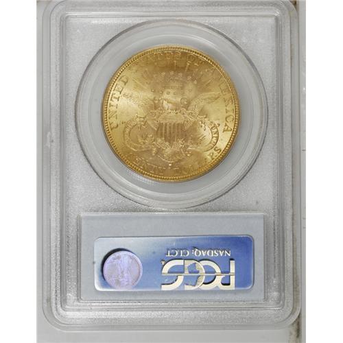 1889-S $20 MS62 PCGS. A well struck and lustrous peach