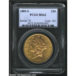 1889-S $20 MS62 PCGS. Olive-green in color, with a hint of rose patina within the portrait. A lustro