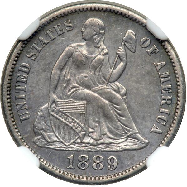 1889-S. NGC graded AU-58. Evenly toned. Only 972,678 minted.