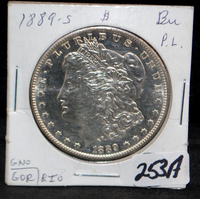 1889-S MORGAN DOLLAR FROM SAFE DEPOSIT - SELLER GRADES AT BU PL (THE CURRENT COIN WORLD TRENDS LISTS AN MS63 @ $375.00, MS64 @ $625.00, MS65 @ $2,250.00 & AN MS66 @ $5.500.00)
