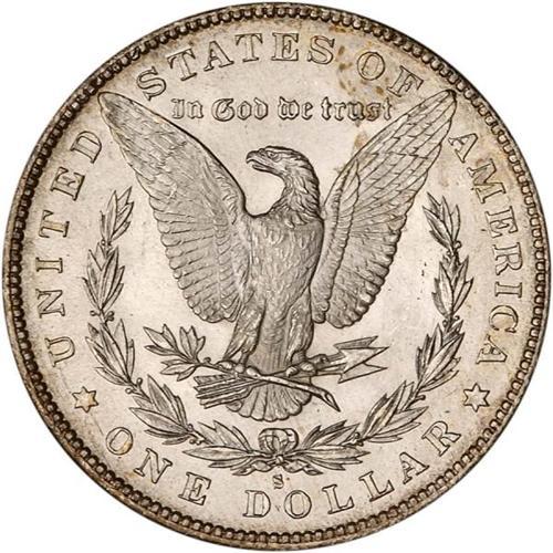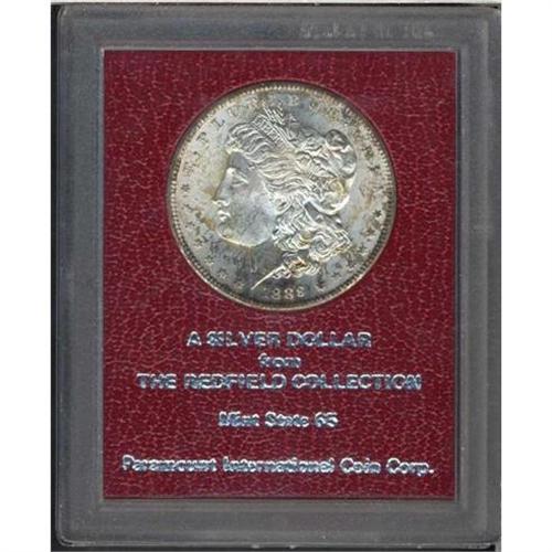 <b>1889-S Morgan Dollar. Paramount Grade MS65 Our Net grade MS-63.</b> A few light chattermarks on the cheek of Liberty as well as in the fields. Another of the frosty Redfield hoard pieces that have turned out to be very popular with silver dollar collectors. LaVere Redfield, when he died in the early 1970s, left an estate of close to 475,000 silver dollars, mainly S-mints, mainly original (if bagmarked) pieces in original Mint sewn bags! <b>(PCGS # 7194)</b>
