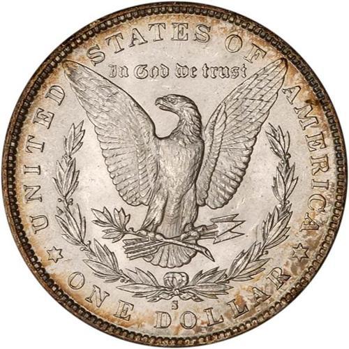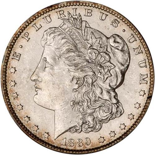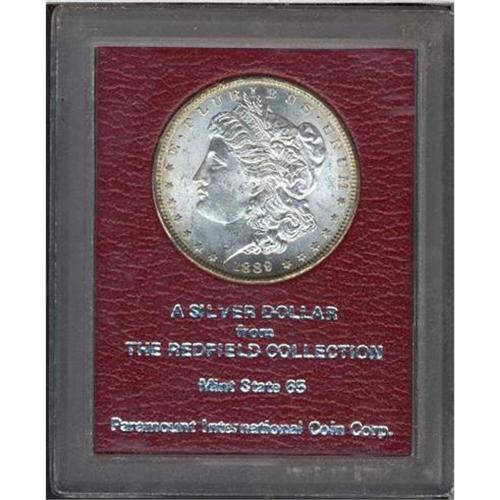 <b>1889-S Morgan Dollar. Paramount Grade MS65 Our Net Grade MS-63.</b> A frosty, if somewhat bagmarked example from the famous Redfield hoard of S-mint silver dollars. Lustrous with peripheral toning deriving from the red cardboard holder in which it is encased (these first appeared on the market in the late-1970s) <b>(PCGS # 7194)</b>