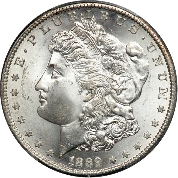 1889-S Morgan Dollar. PCGS graded MS-65. Well struck and choice for the grade.We could leave it there, but feel this coin deserves further discussion for it is an incredibly lustrous gem '65 whose resolute cartwheels dance before your eyes. Further, both sides play host to deep bold strikes on the key devices. A lovely coin, one that certainly meets the qualifications for the assigned grade. Pop 546; 72 finer at PCGS (PCGS # 7194) .