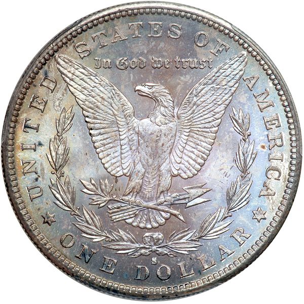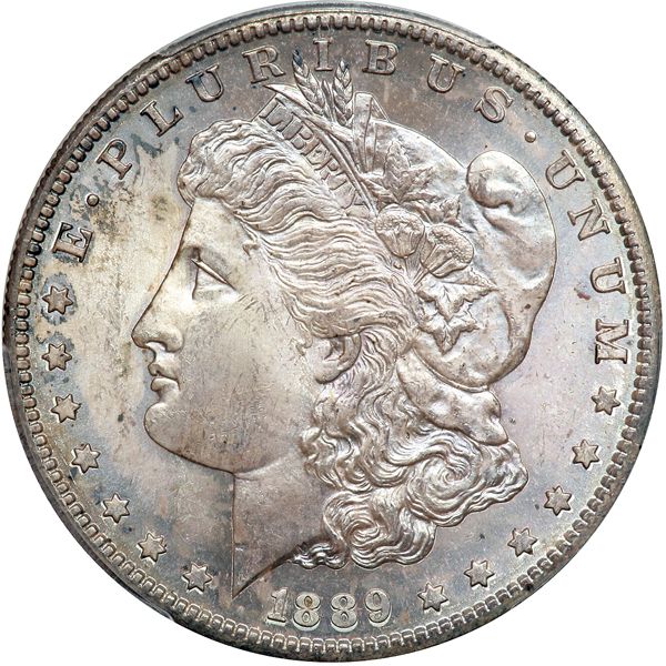 1889-S Morgan Dollar. PCGS graded MS-64+ CAC Approved. Nice light blue toning with choice, representative luster as well as a broad, full strike on the devices. A handsome offering (PCGS # 7194) .