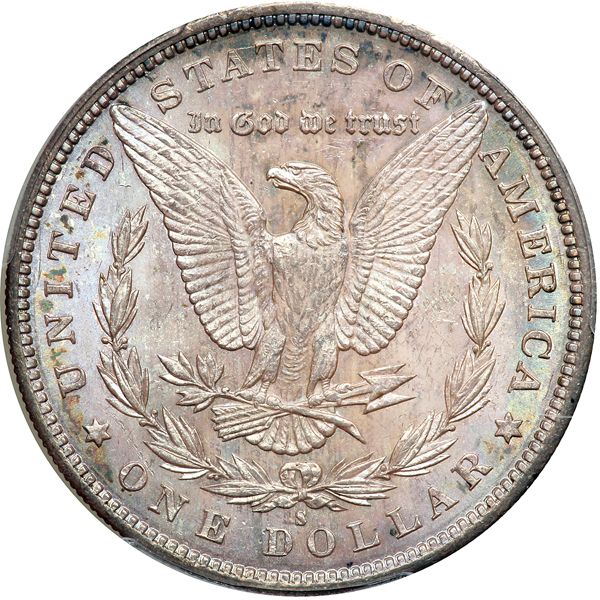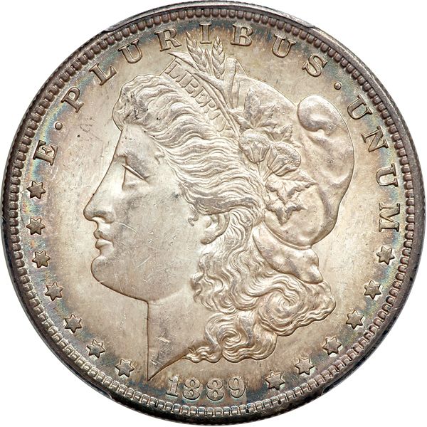 1889-S Morgan Dollar. PCGS graded MS-64 CAC Approved. Nice old time toning with resolute luster throughout, gleaming and uninterrupted by haze or surface deterioration. Close to Gem quality (PCGS # 7194) .