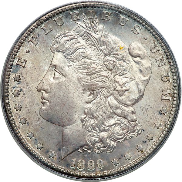 1889-S Morgan Dollar. PCGS graded MS-64 PQ CAC Approved. Well struck with nice even golden toning (PCGS # 7194) .