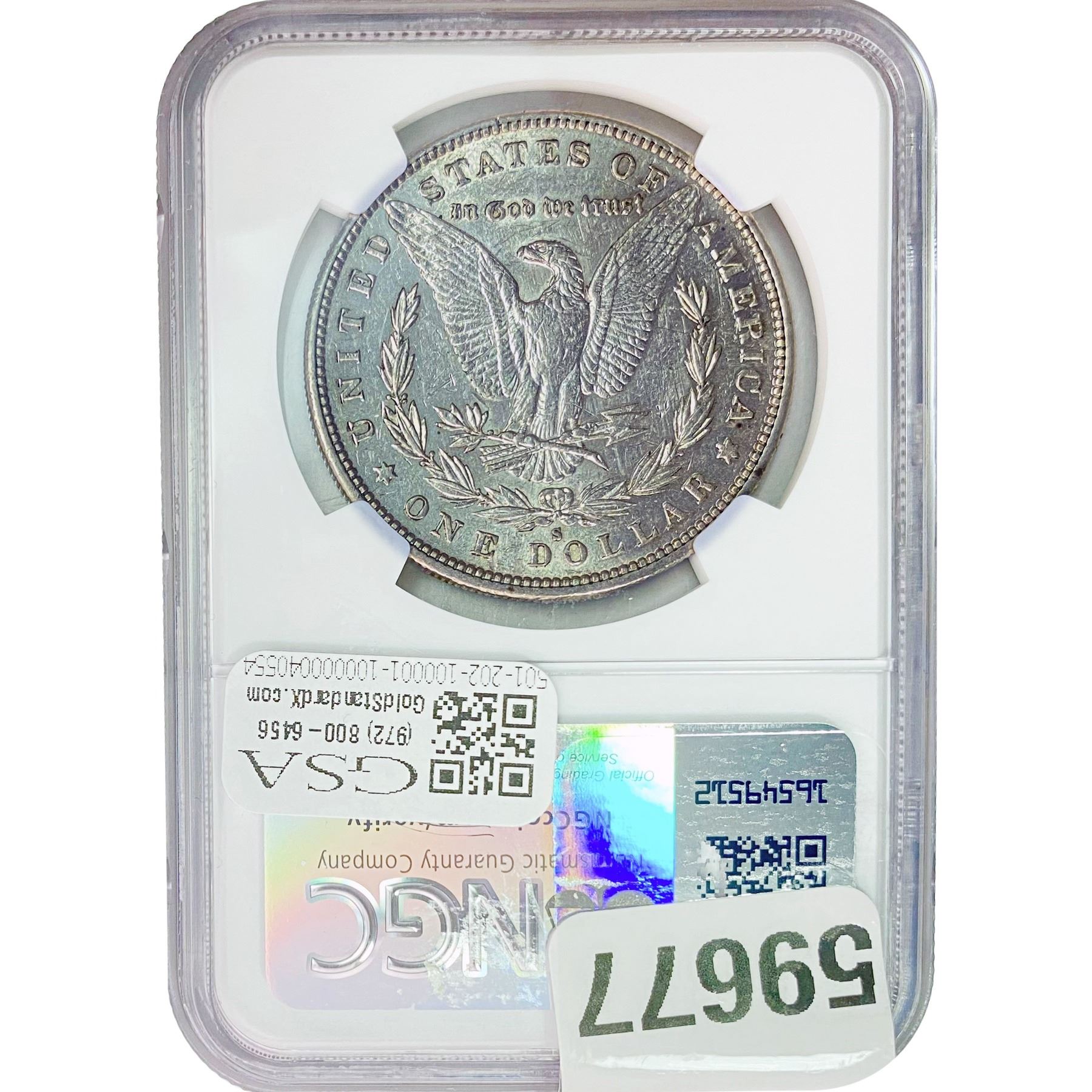 e. Coins sold referencing a third-party grading service are sold “AS IS” without any express or implied warranty, except for a guarantee by GSA that they are genuine. Removal or alteration of the holder, voids all of Bidder’s claims concerning that Product. Certain warranties may be available from the grading services and Bidders are referred to them for further details: Numismatic Guaranty Corporation (NGC), PO Box 4776, Sarasota, FL 34230, www.ngccoin.com/services/writtenguarantee.asp; Professional Coin Grading Services (PCGS), PO Box 9458, Newport Beach, CA 92658, www.pcgs.com/guarantee.html; ANACS, 6555 S. Kenton St., Ste. 303, Englewood, CO 80111; and Independent Coin Grading Co. (ICG), 7901 East Bellview, Ave., Suite 50, Englewood, CO 80111.