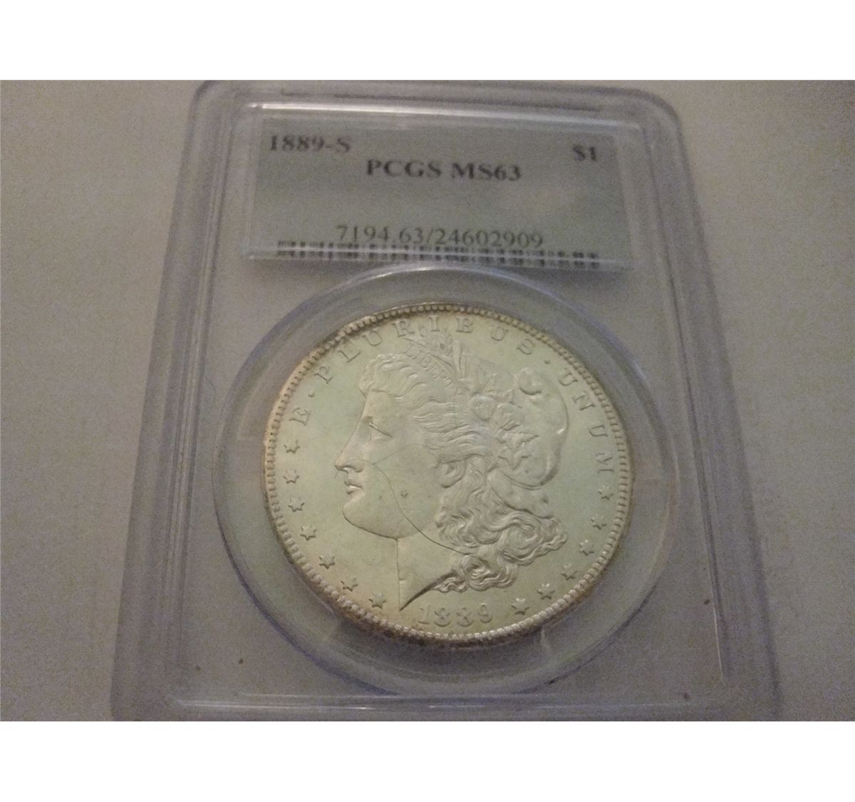 1889-S PCGS MS-63 MORGAN SILVER DOLLAR. RARE DATE.