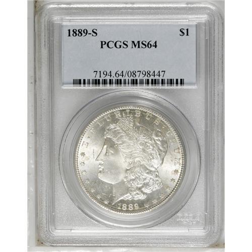 1889-S S$1 MS64 PCGS. Bright and semi-reflective, with