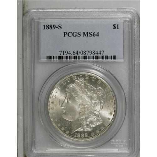 1889-S S$1 MS64 PCGS. Bright and semi-reflective, with