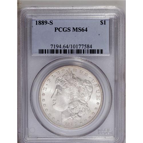 1889-S S$1 MS64 PCGS. The smooth, frosty surfaces are