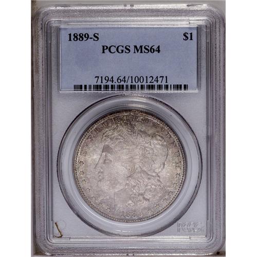1889-S S$1 MS64 PCGS. Well struck and satiny, with dap
