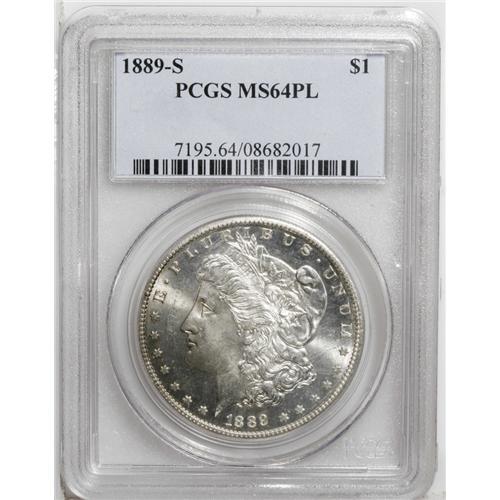 <B>1889-S<img border='0' src='http://www.heritagecoins.com/images/star.gif' width=10 height=10>$1> MS64 Prooflike PCGS.</B></I> A moderately mirrored near-Gem with a touch of rose and gold on the central devices. Well struck with abrasions on the cheek. Population: 33 in 64 Prooflike, 6 finer (8/06).
