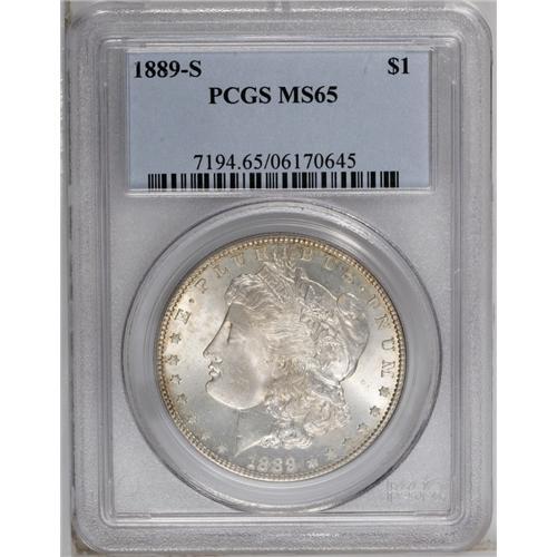 1889-S S$1 MS65 PCGS. Attractive luster is a prime dra