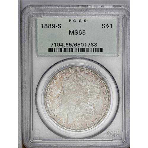 1889-S S$1 MS65 PCGS. Mottled peach and dove-gray pati 1889-S[img border='0' src='http://www.heritag