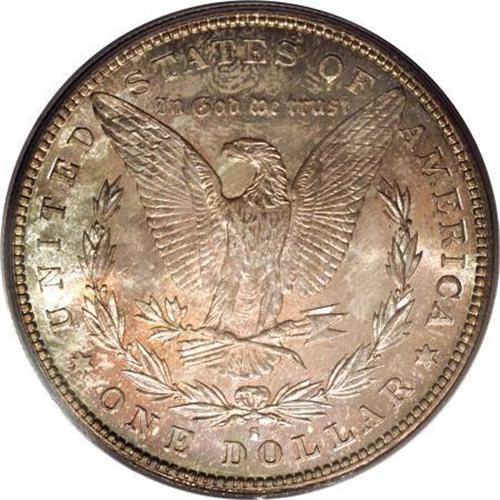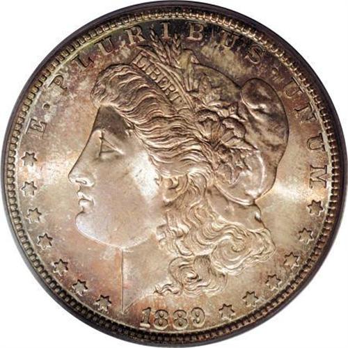 1889-S S$1 MS66 PCGS. Splashes of orange, olive, and g