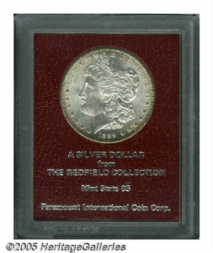<B>1889-S<S$1> Morgan Dollar MS65 Paramount International (MS63).</B></I> Ex: Redfield. A well struck piece with blazing luster and a band of medium golden-brown color about the margins. Distributed minor marks do not deny the eye appeal.