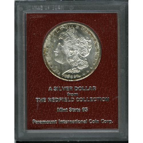 <B>1889-S<img border='0' src='http://www.heritagecoins.com/images/star.gif' width=10 height=10>$1> Morgan Dollar MS65 Paramount International (MS63).</B></I> Ex: Redfield. Light golden-brown and apple-green toning visits the rims of this lustrous and sharply struck better date silver dollar. <BR><BR><B>Important notice:</B> Heritage usually auctions material at the rate of 200-250 lots per hour. On some occasions eBay Live bid software or the Internet may not be able to keep up with the pace of the auction. We recommend placing a realistic absentee bid now as insurance to avoid disappointment. Occasionally the auctioneer may eliminate or reject an eBay Live bid, and the auctioneer may also reopen a lot after the close of the eBay live bidding (usually because we missed an audience bid), and may reject your bid even if it shows you as the winning bidder. By bidding via eBay Live, you agree that Heritage may award the lot to another bidder at its sole discretion under the circumstances described above or any other reasonable circumstances. Since eBay bids are not shown to us until we open the lot on the floor, we treat those bids just like floor bids. In most cases the floor responds before the eBay bid is presented to us, due to Internet lag time, so for consistency we have made it a policy that floor bids are always considered first over tie eBay live bids. Also please note that all Heritage lots purchased through eBay Live carry a 20% Buyer's Premium. Please make sure you read the Terms and Conditions before you bid. This lot is being auctioned in conjunction with a live floor auction by Heritage Galleries & Auctioneers. All final auction and invoice information will be supplied by Heritage Galleries & Auctioneers, and all other information should be considered preliminary. Lot:5423 <BR><BR><B>Winning Notification and Billing:</B> After the FINAL session in this auction is complete, Heritage will send e-mail and snail mail invoices. This process normally takes several days. All final auction and invoice information will be supplied by Heritage Galleries & Auctioneers, and all other information should be considered preliminary. <BR><BR>This auction will be conducted on a live auction floor and over the Internet through eBay Live. If you choose to place an absentee bid, please take a moment to <font color='#0000ff'><u><a href='http://pages.ebay.com/liveauctions/help/before/laabsentee.html'>learn how eBay Live absentee bidding works</a></u></font><font color='#000000'>