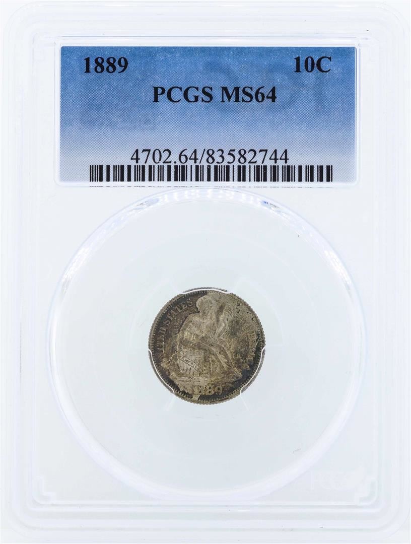 One 1889 Seated Liberty Dime Coin PCGS MS64. PCGS Graded.