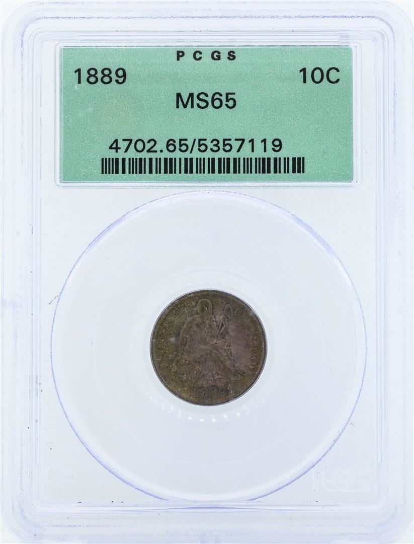 One 1889 Seated Liberty Dime Coin PCGS MS65. PCGS Graded.