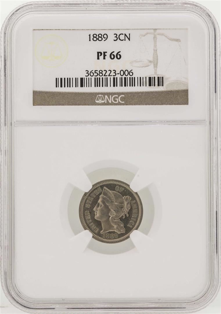 One 1889 Three Cent Nickel Proof Coin NGC PF66. NGC Certified.