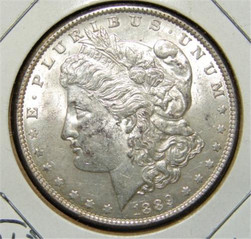 1889 U.S. MORGAN SILVER DOLLAR. AU.