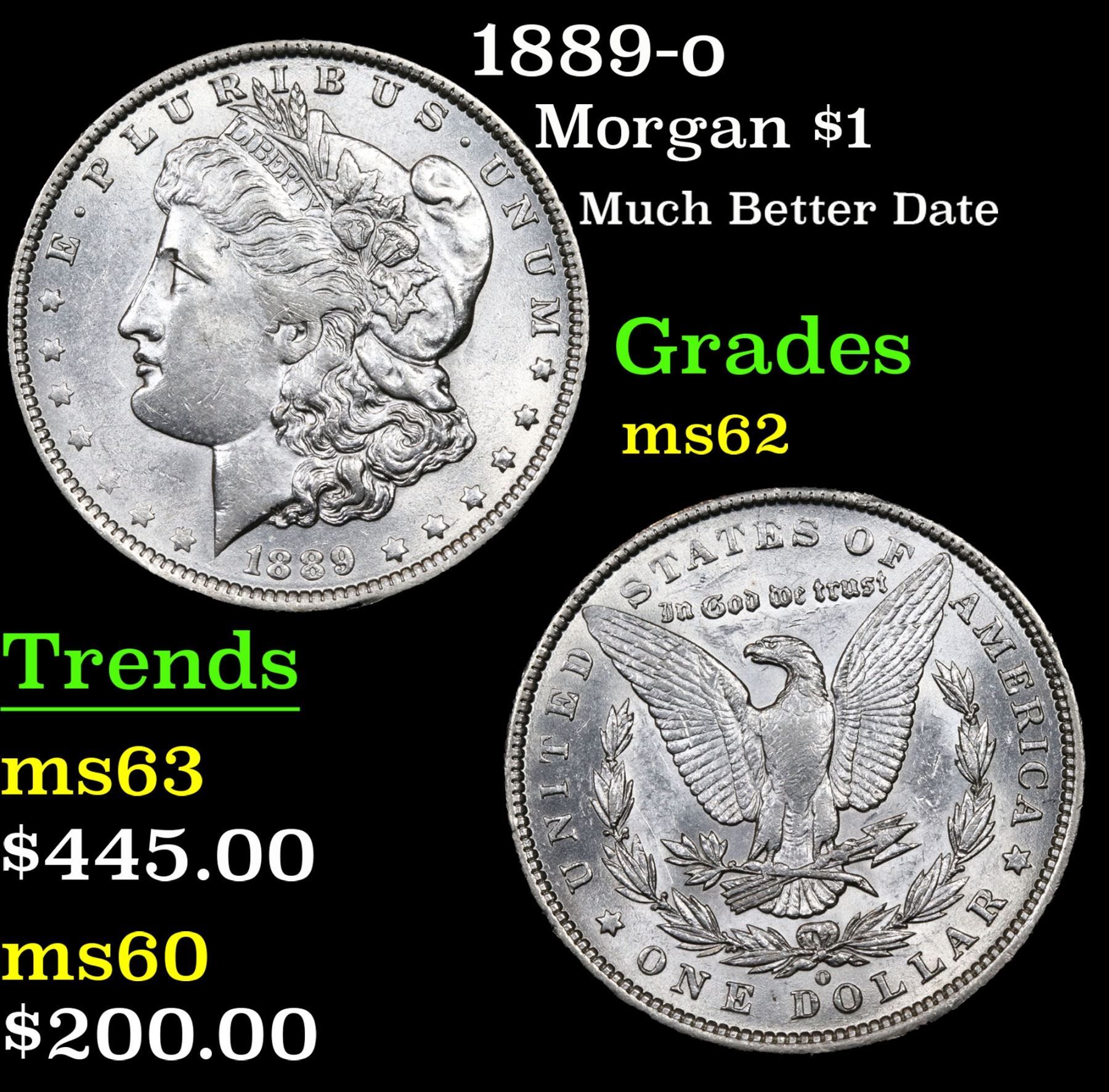 1889-o Much Better Date . Morgan Dollar $1 Grades Select Unc.
