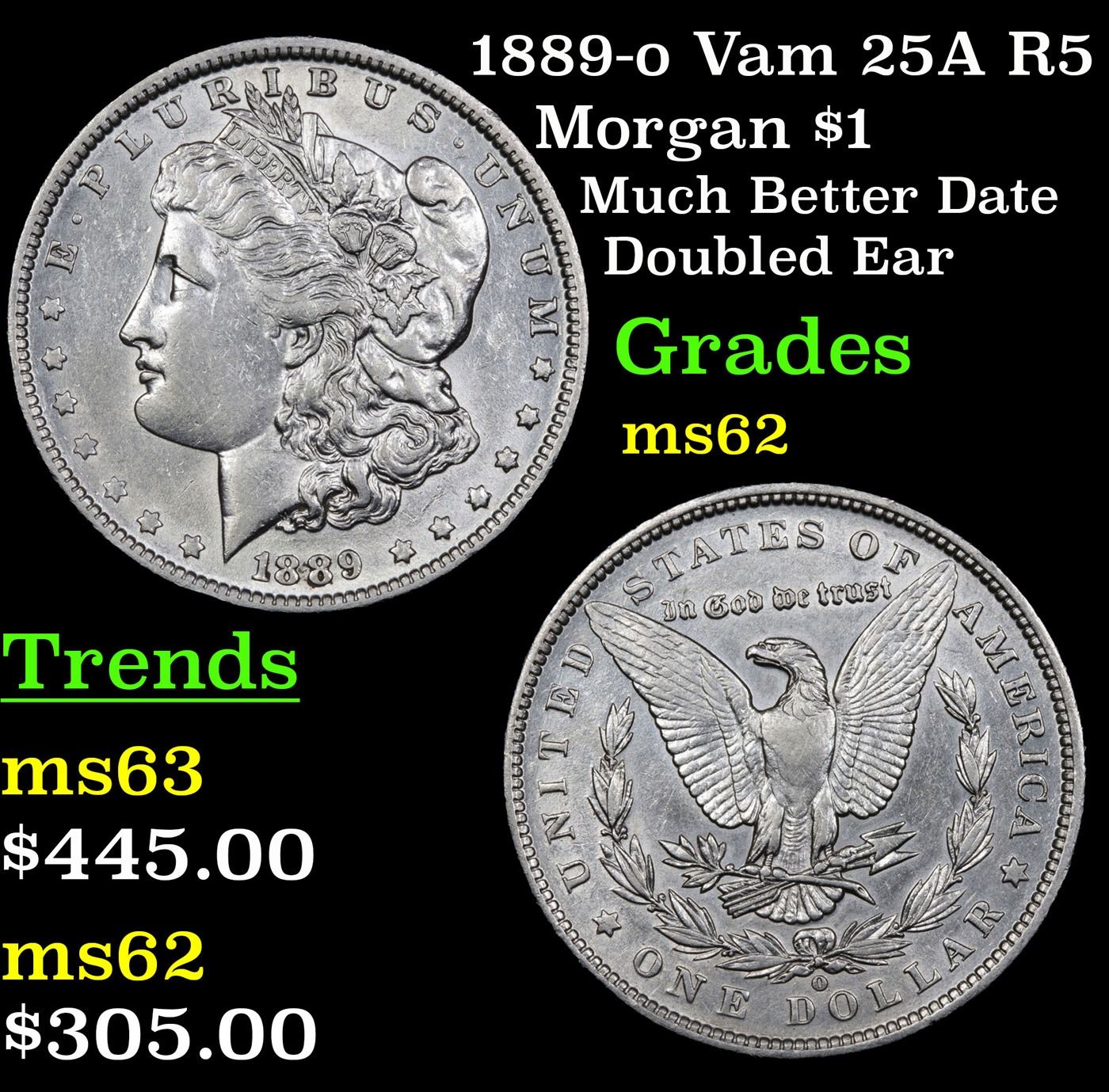 1889-o Vam 25A R5 Morgan Dollar $1 Grades Select Unc.