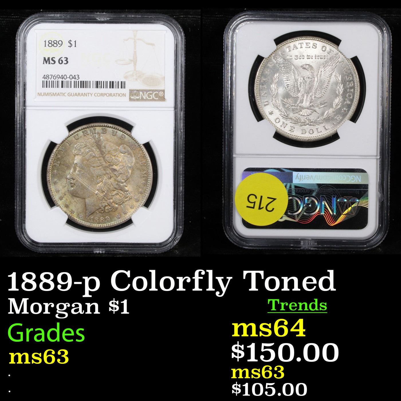 1889-p Colorfly Toned Morgan Dollar $1 Graded ms63 By NGC. 0