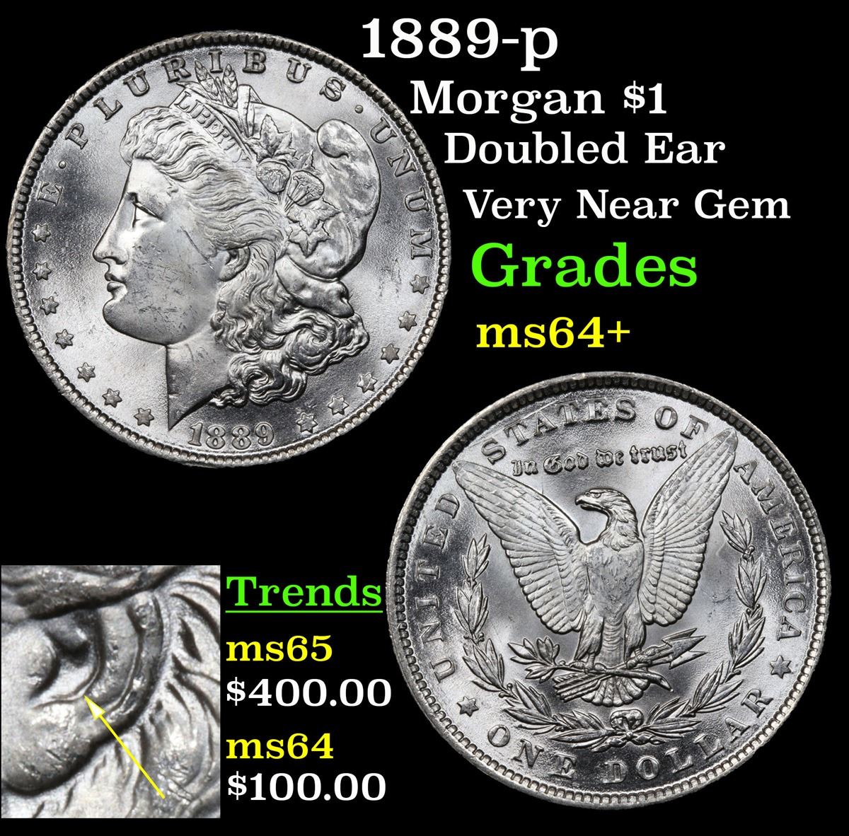 1889-p Doubled Ear Very Near Gem Morgan Dollar $1 Grades Choice+ Unc.