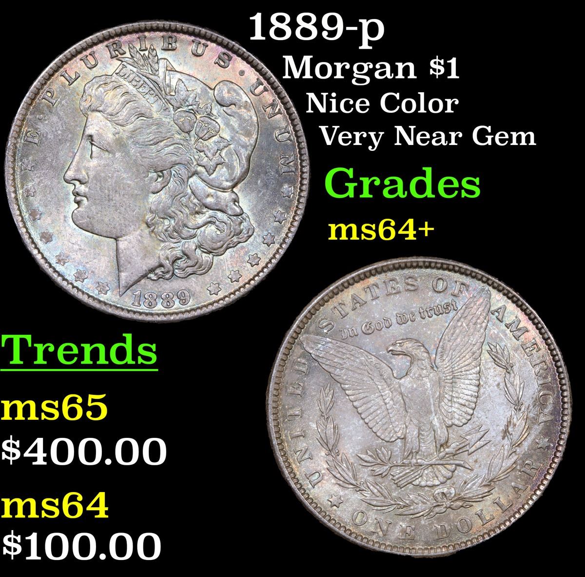 1889-p Nice Color Very Near Gem Morgan Dollar $1 Grades Choice+ Unc.