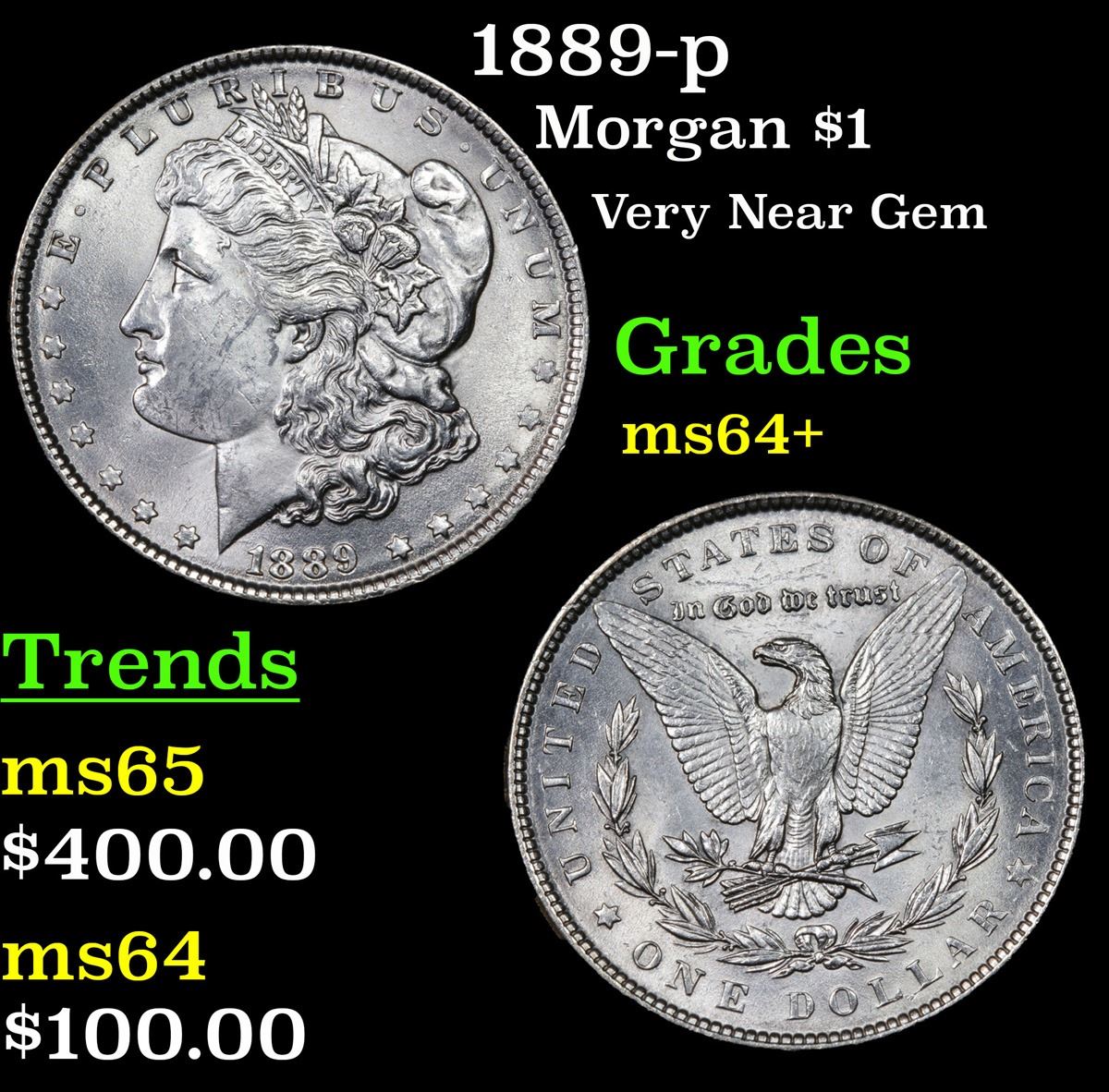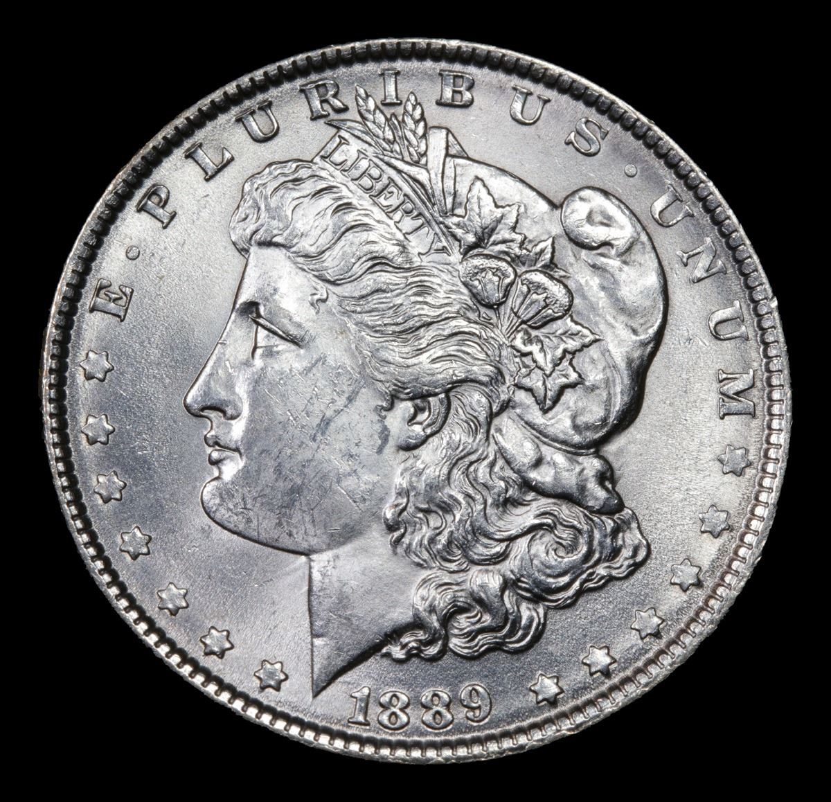 1889-p . Very Near Gem Morgan Dollar $1 Grades Choice+ Unc.