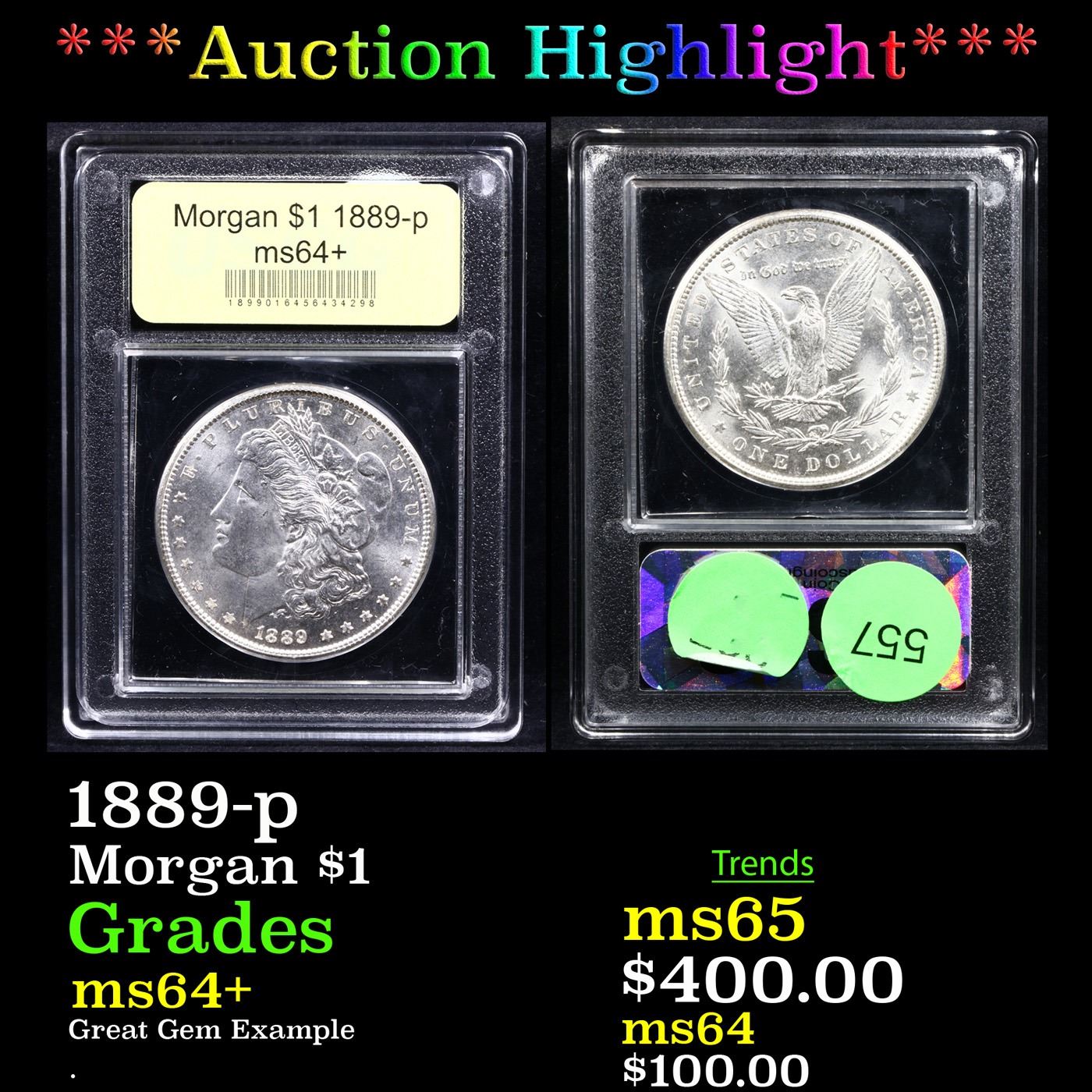 We DO NOT guarantee coin grades on any of our lots. Please study photos carefully and Video during the auction as well as asking questions before bidding. We may be reached at 856-685-9848 prior to the auction M-F 9am-5PM EST.