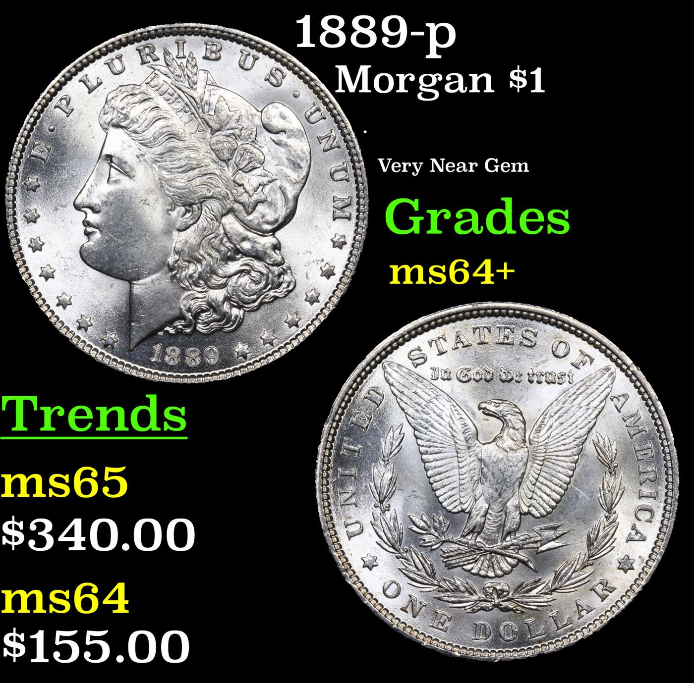 1889-p Morgan Dollar $1 Grades Choice+ Unc.