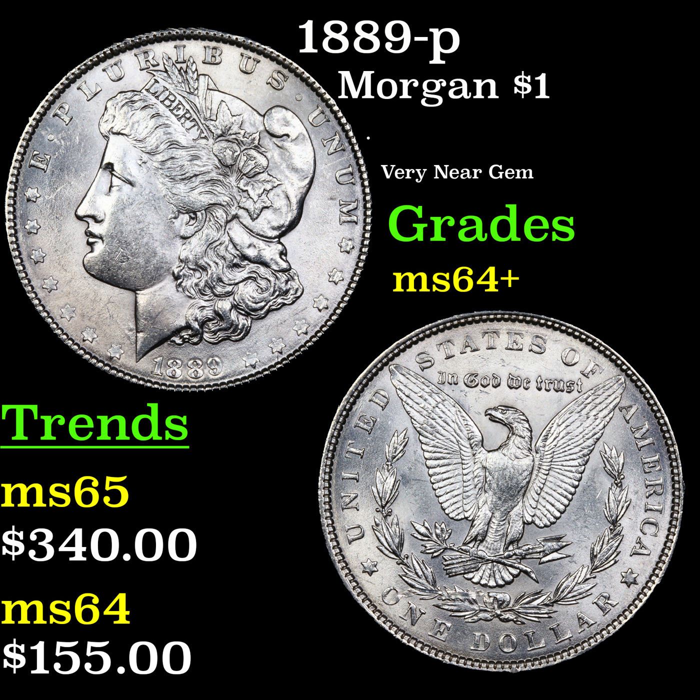 1889-p Morgan Dollar $1 Grades Choice+ Unc.