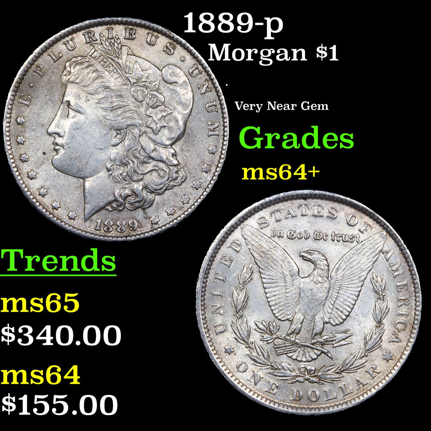 1889-p Morgan Dollar $1 Grades Choice+ Unc.