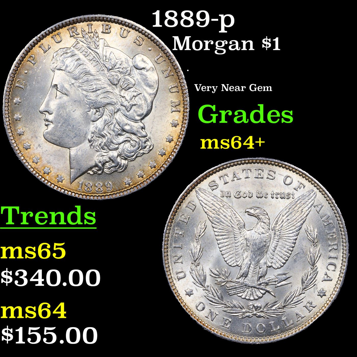 1889-p Morgan Dollar $1 Grades Choice+ Unc.