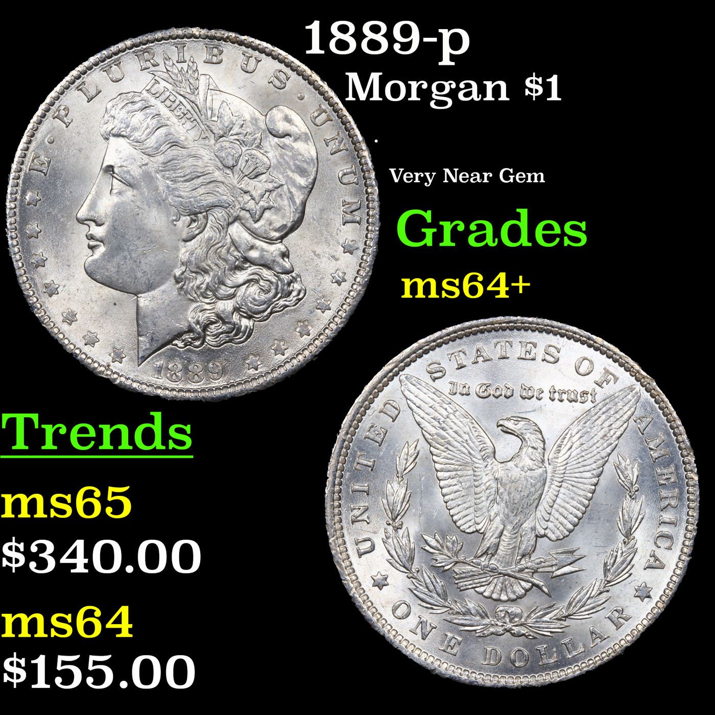 1889-p Morgan Dollar $1 Grades Choice+ Unc.
