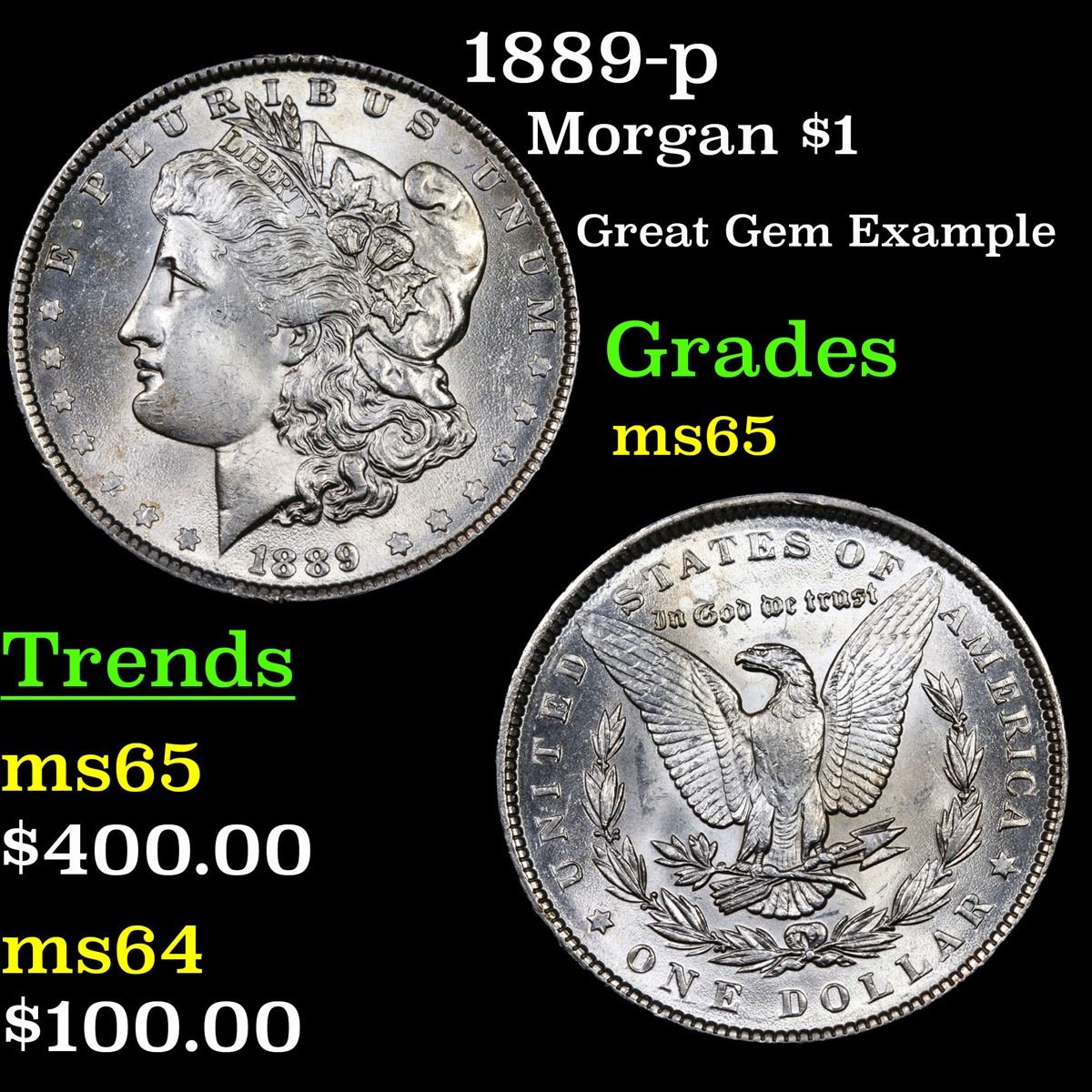 1889-p . Great Gem Example Morgan Dollar $1 Grades GEM Unc. A Corey's Pick, Bid to Win, Don't let it get Away Coin