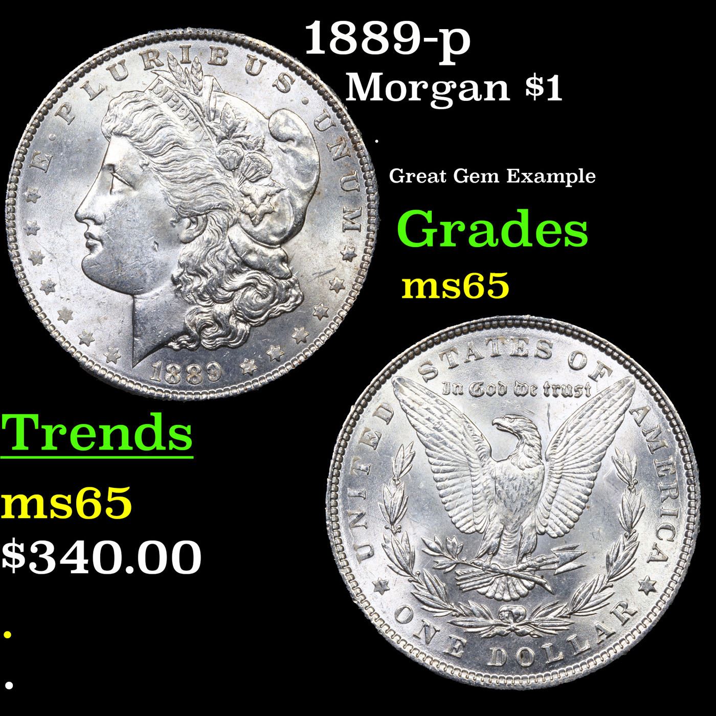 1889-p Morgan Dollar $1 Grades GEM Unc.