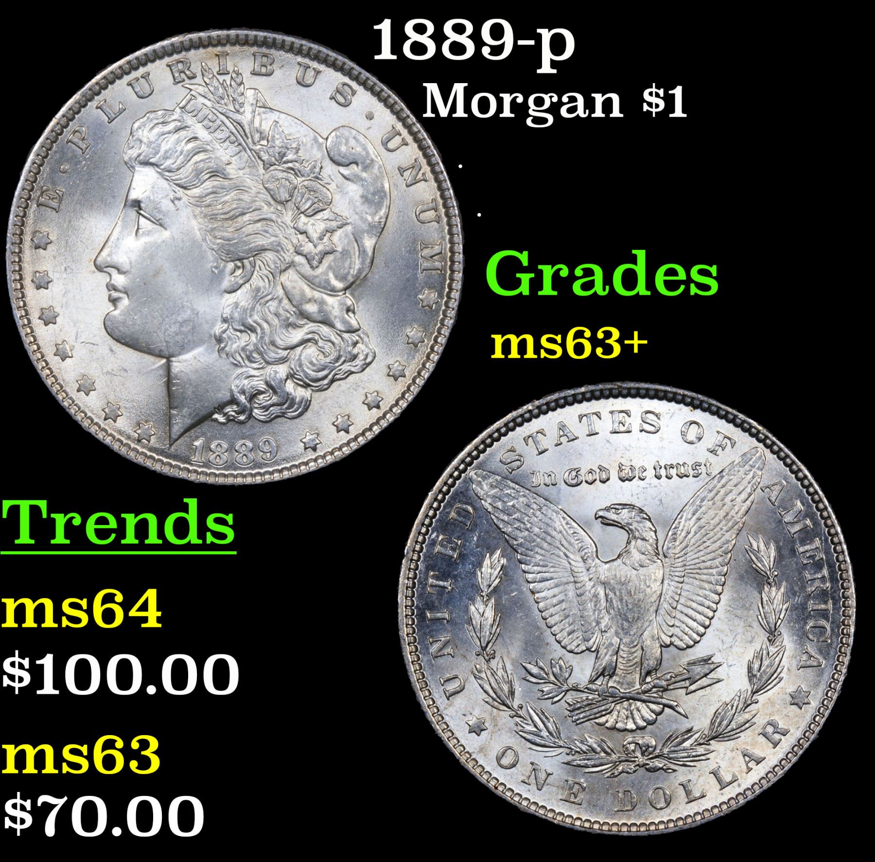 1889-p Morgan Dollar $1 Grades Select+ Unc.
