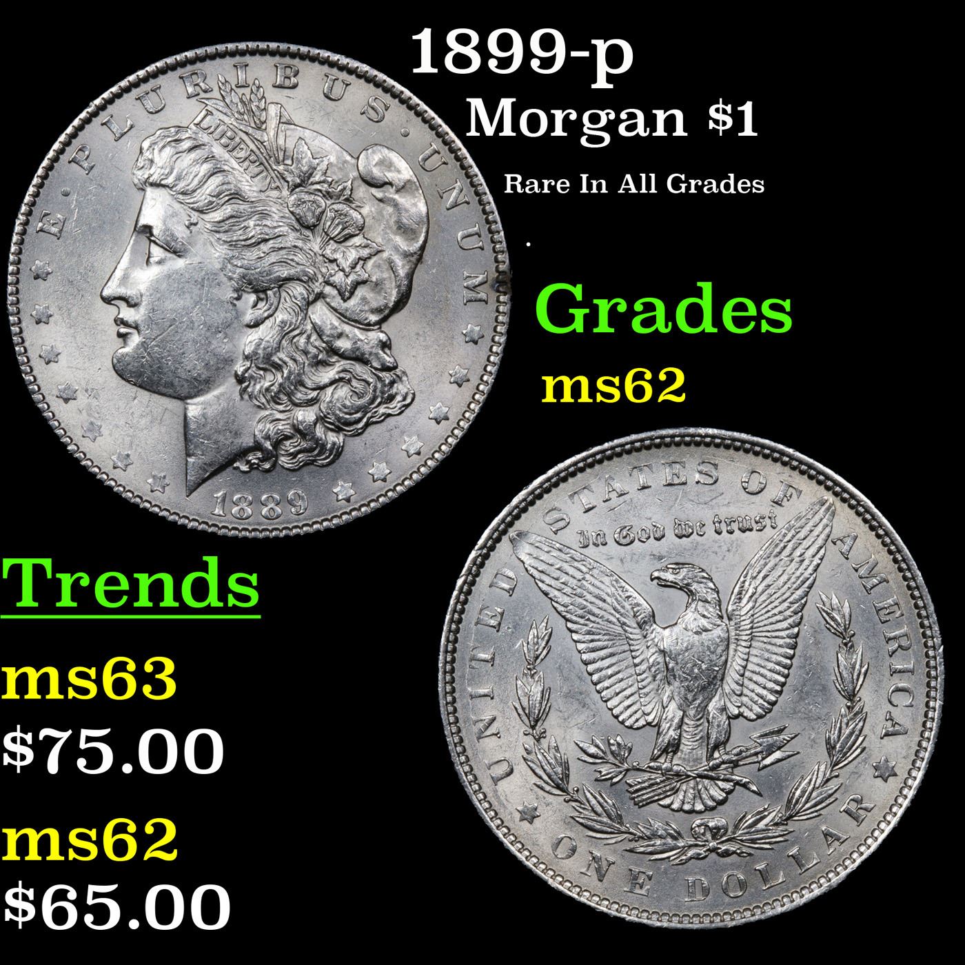 1889-p Morgan Dollar $1 Grades Select Unc.