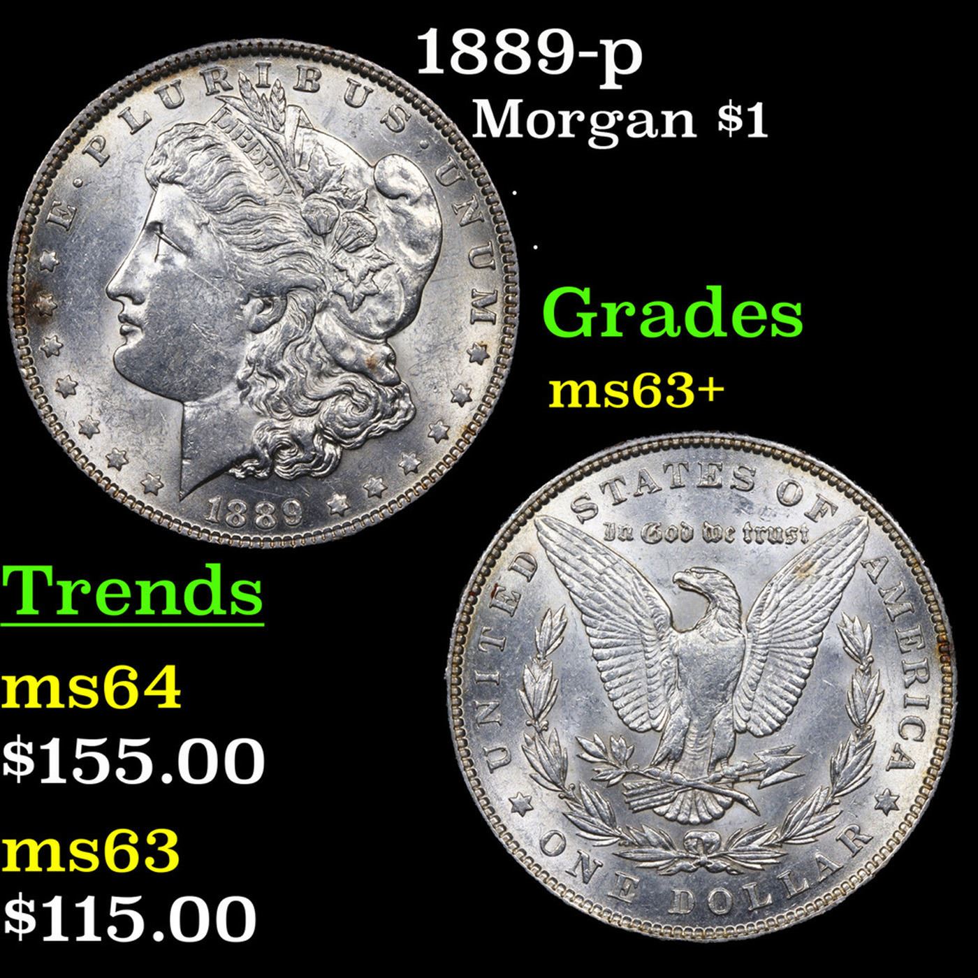1889-p Morgan Dollar 1 Grades Select+ Unc